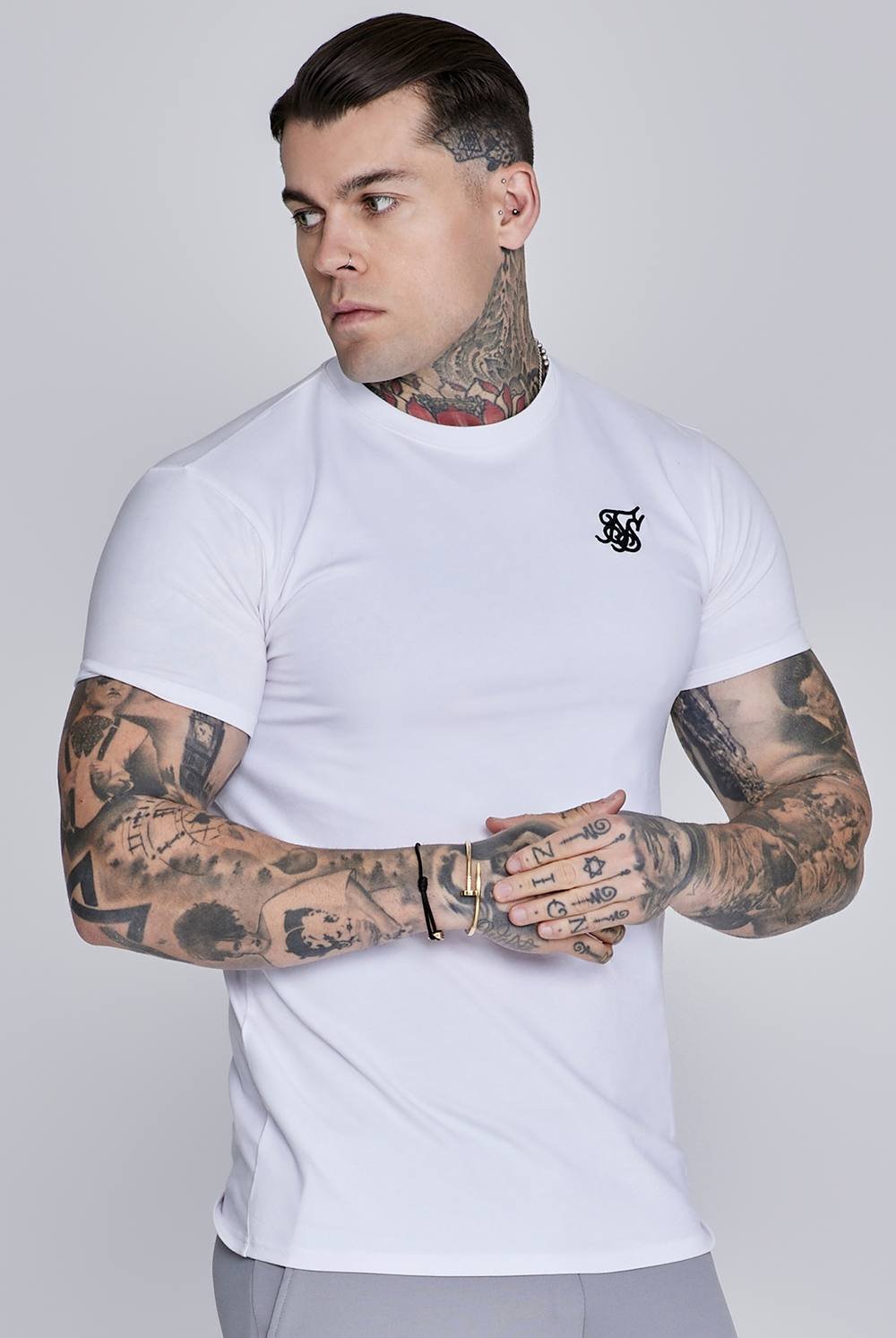 The SikSilk Men's Essentials T-Shirt in White is available in sizes M.