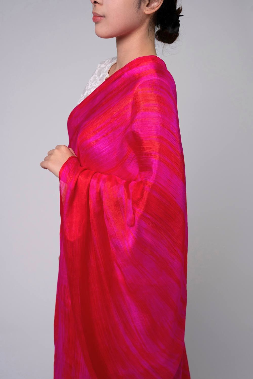 The Silk and Bears Radiant Red & Fuchsia Silk Scarf is ideal for evening, party, special occasion.