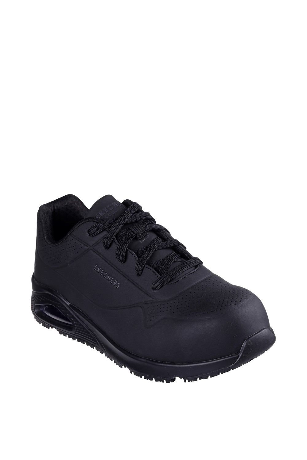 The Skechers Men's Uno SR - Doltin Safety Trainer in Black is ideal for work, everyday.