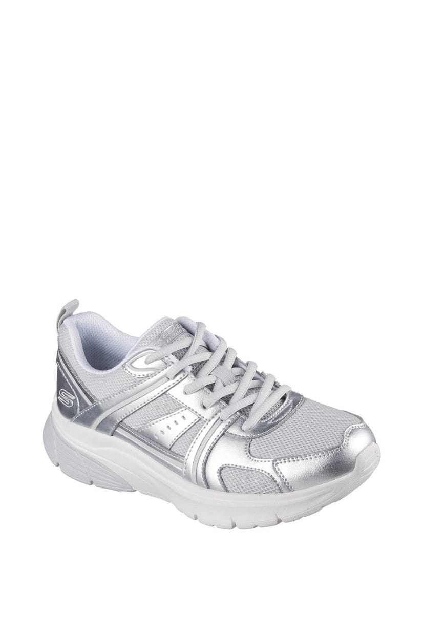 The Skechers Silver Lace-Up Trainers for Women is available in sizes 3, 4, 5, 6, 7, 8.