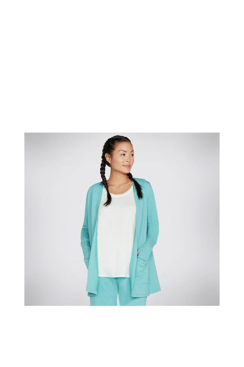 The Skechers Turquoise French Terry Hooded Cardigan is ideal for casual, everyday.