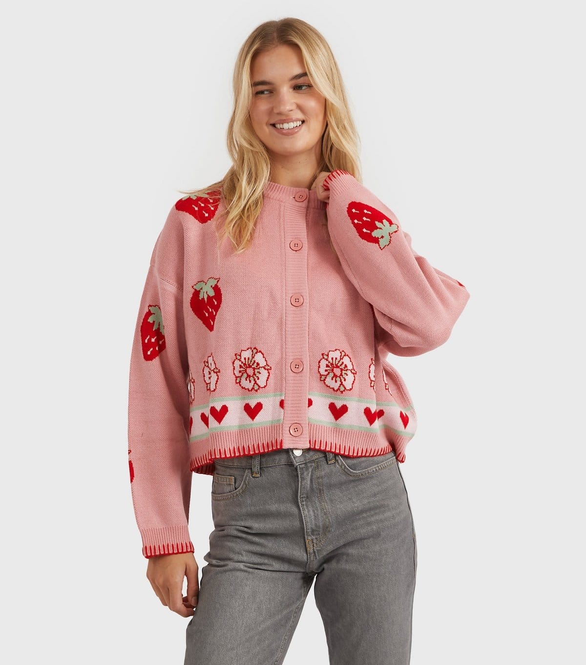 The Skinnydip Pink Strawberry Shortcake 3D Cardigan is ideal for casual, everyday.