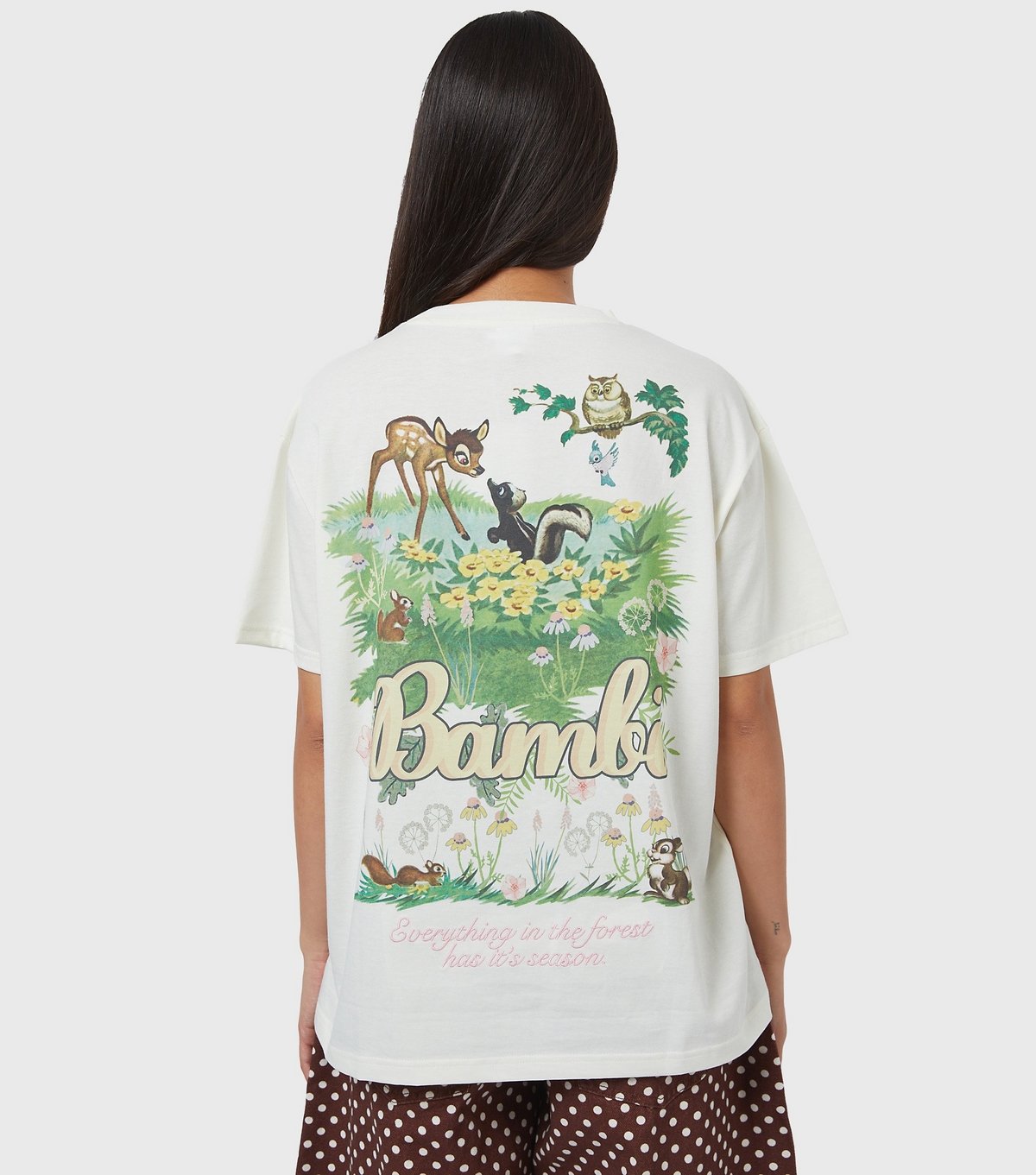 The Skinnydip White Bambi Graphic T-Shirt is available in sizes L, M, S, XL.