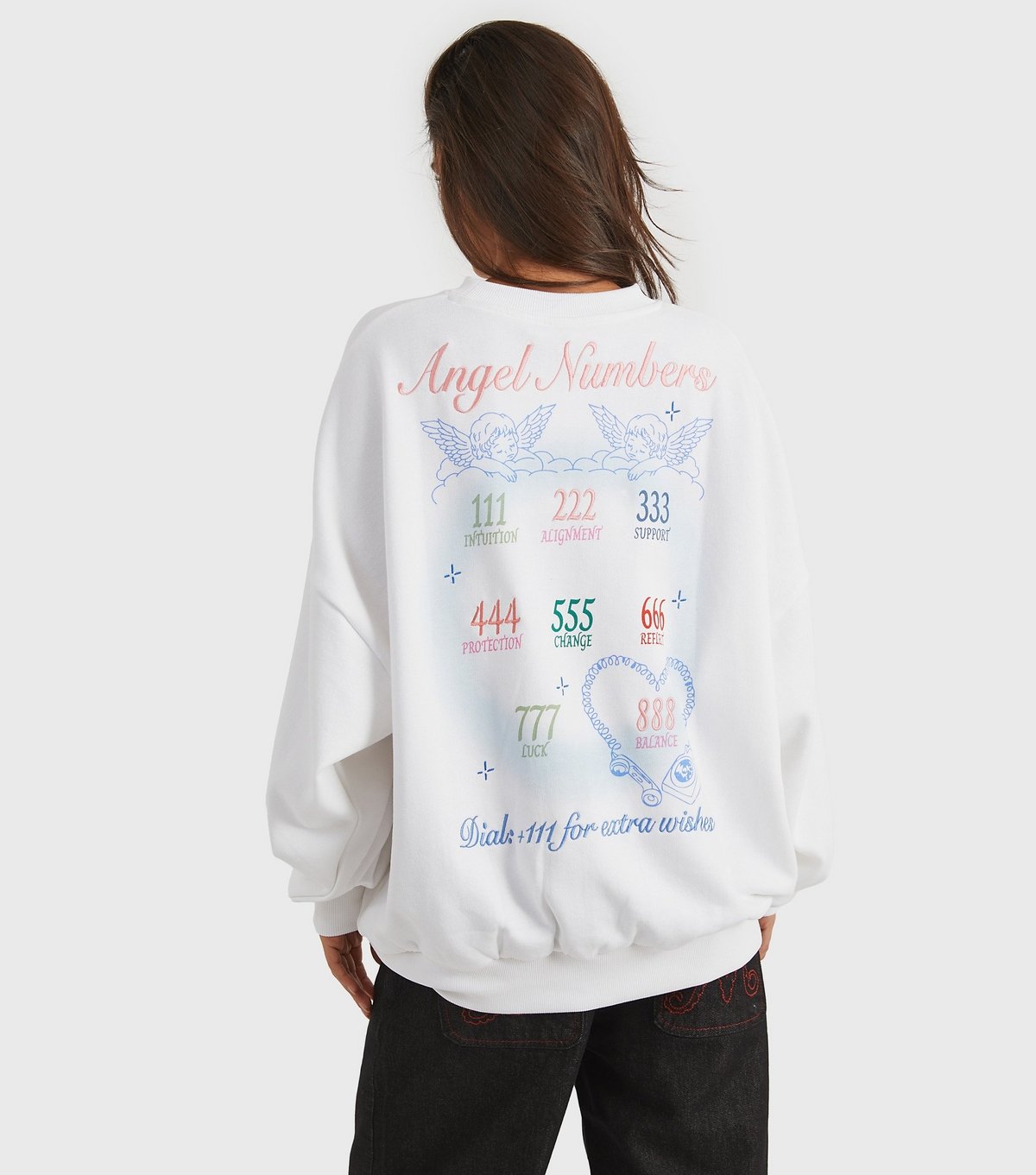 The Skinnydip White Embroidered Angel Numbers Sweatshirt is ideal for casual, everyday.