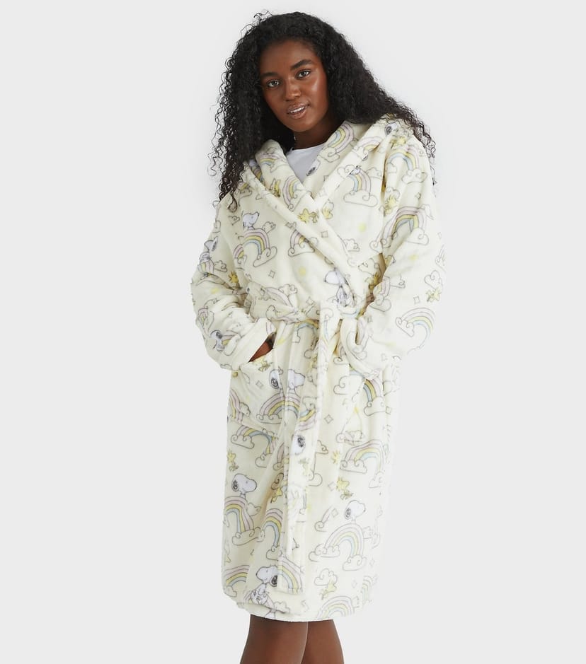 The Skinnydip White Snoopy Dressing Gown is available in sizes L.