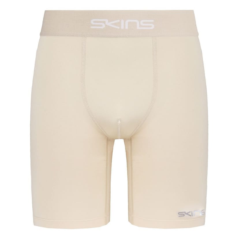 The Skins Men's DNAmic Force Light Beige Compression Shorts is made from polyester, elastane.