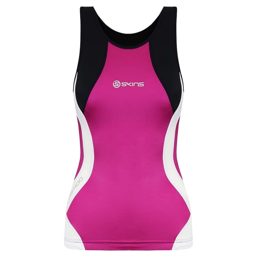The Skins Women's Pink Compression Vest is ideal for triathlon, workout, running.