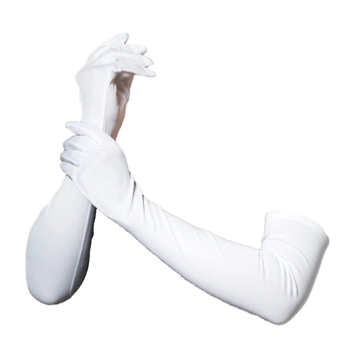 Classic white long gloves made from 100% polyester. Perfect for Halloween and other special occasions.