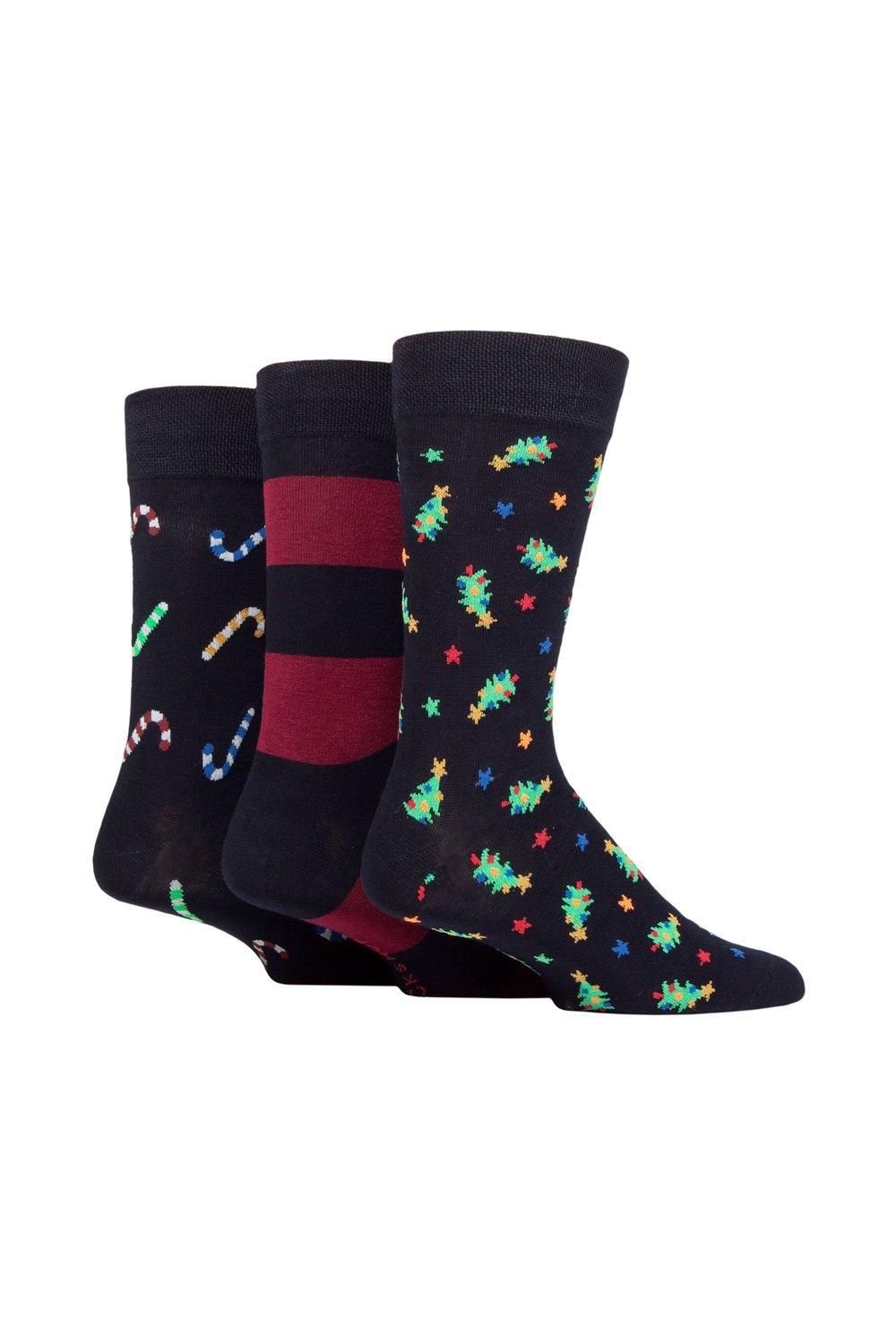 Festive Christmas-themed socks in a triple pack. Featuring black bamboo fabric with fun holiday designs, these socks are perfect for the holiday season.