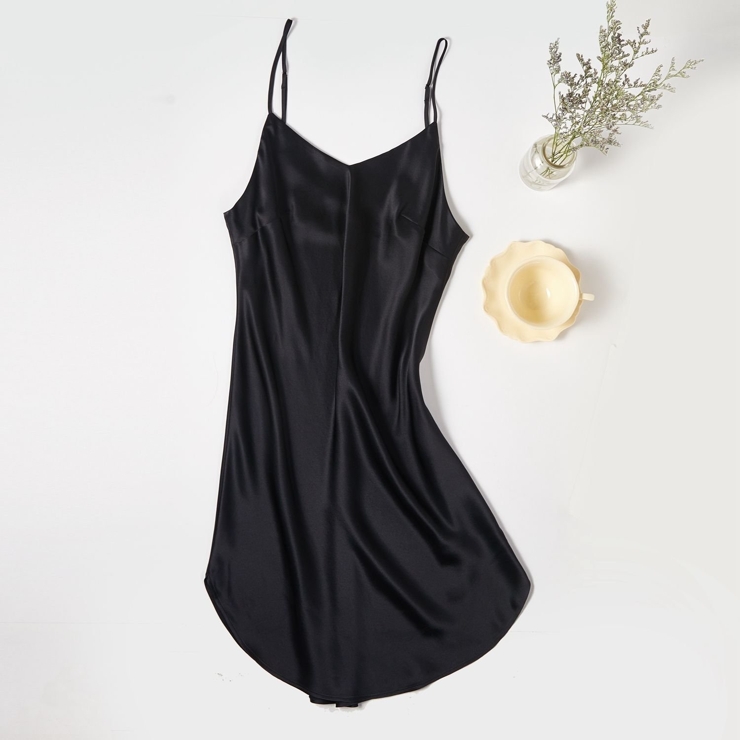 An effortlessly chic, comfy, and versatile black silk slip dress that will stay in your wardrobe for decades. Perfect for lounging, sleeping, or dressing up for special occasions.