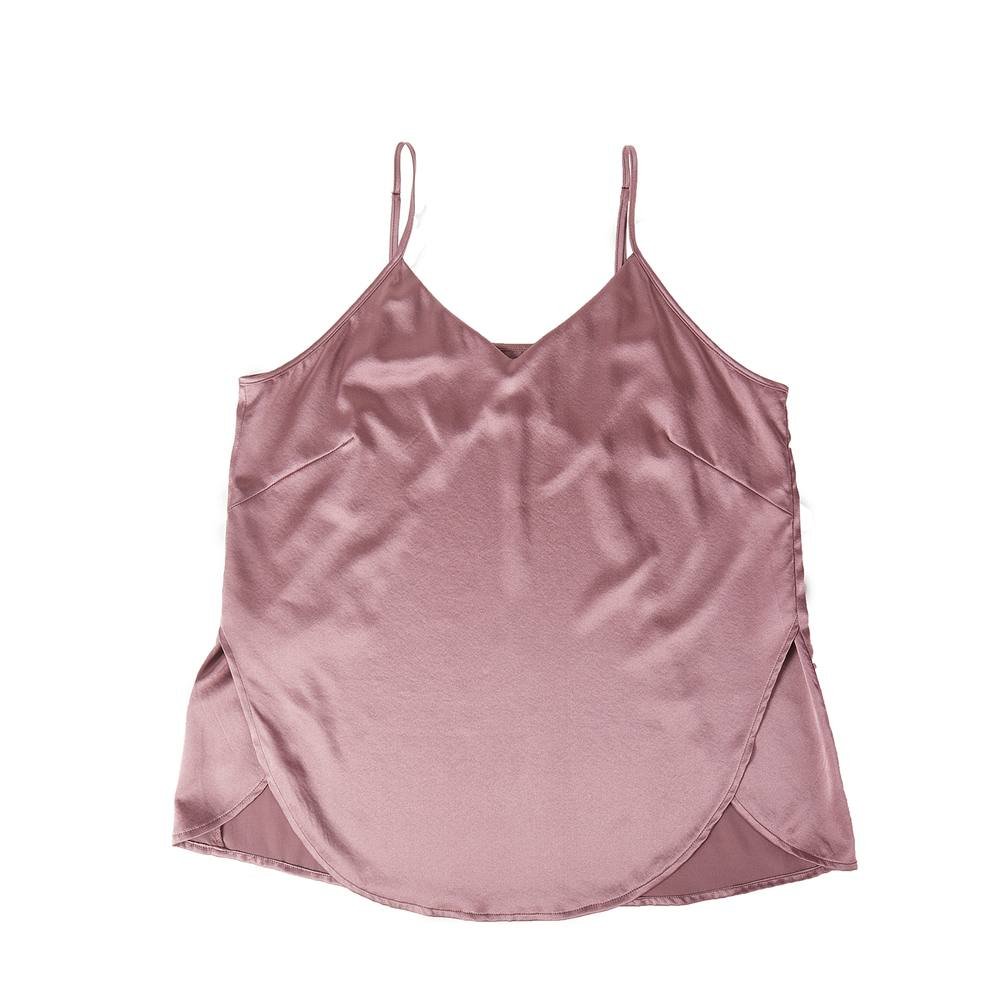 Elegant silk camisole in mauve with a petal hem and V-neckline. Perfect for a cohesive look or mix-and-match styling.