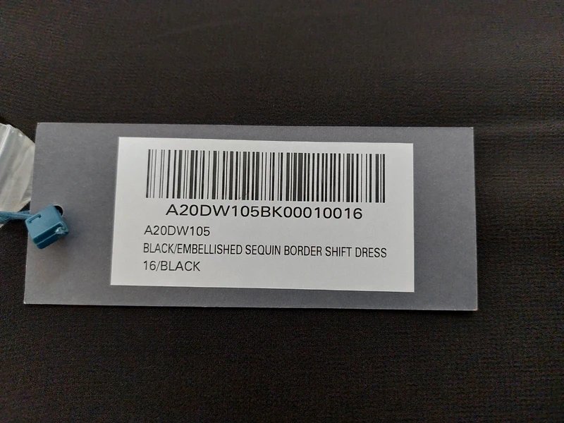 The Sosandar Black Embellished Sequin Border Shift Dress is available in sizes L.