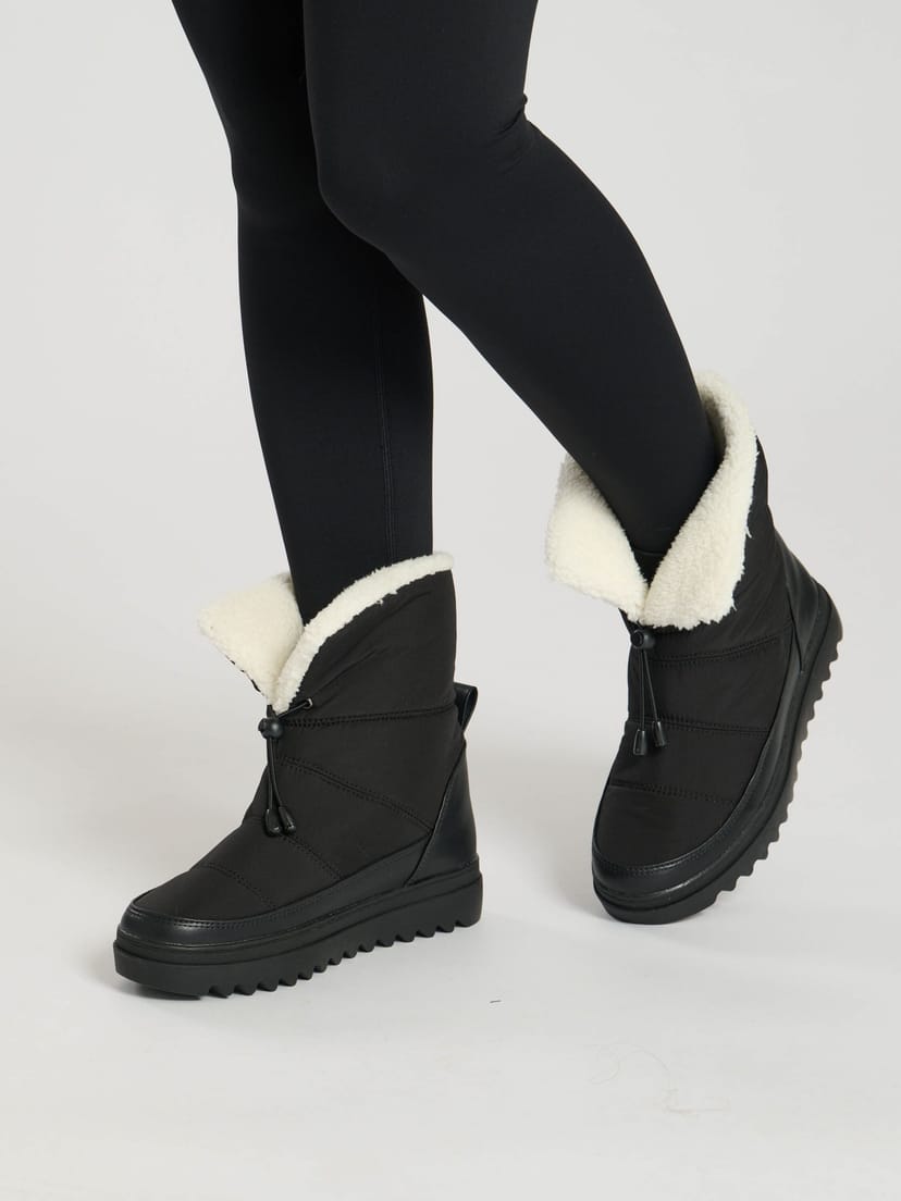 The South Beach Women's Padded Mini Boot With Toggle in Black is ideal for casual, everyday, winter.