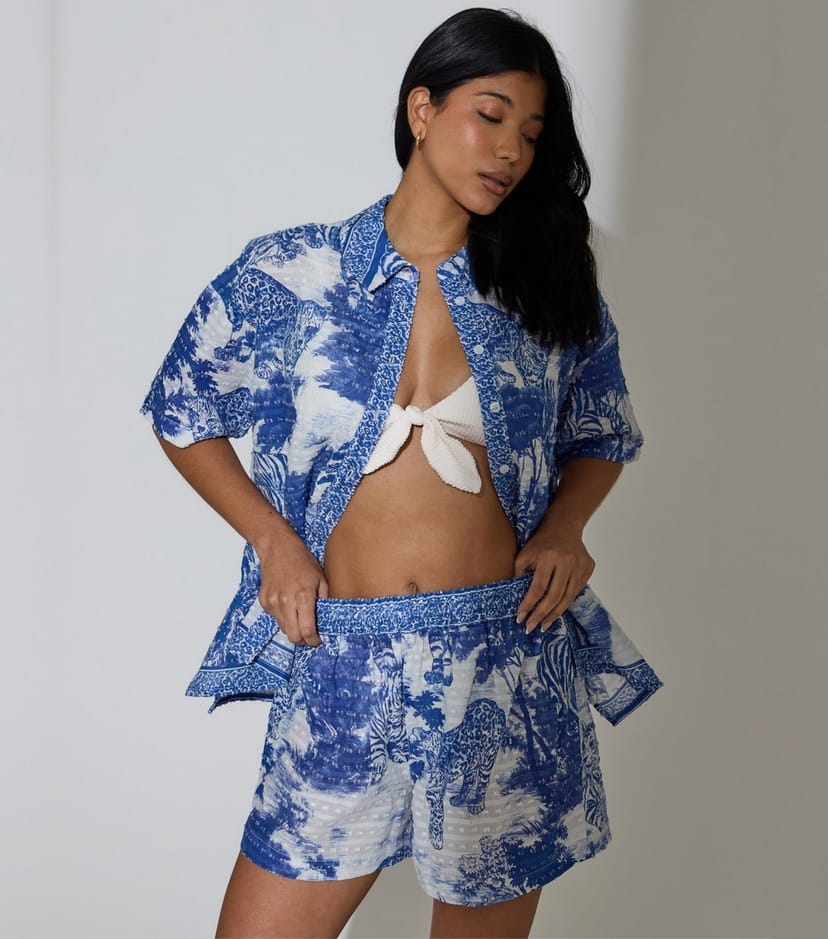The South Beach Blue Leopard Print Shorts for Women is made from woven.