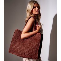 The South Beach Rust Brown Straw Woven Tote Bag is available in sizes ONE SIZE.