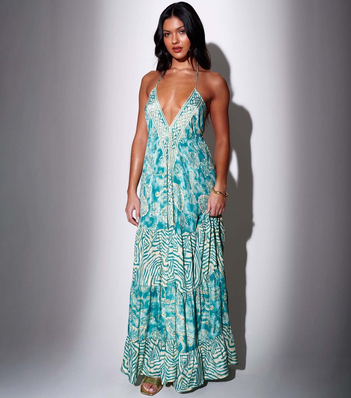 South BeachSouth Beach Turquoise Printed Halter Neck Maxi Dress