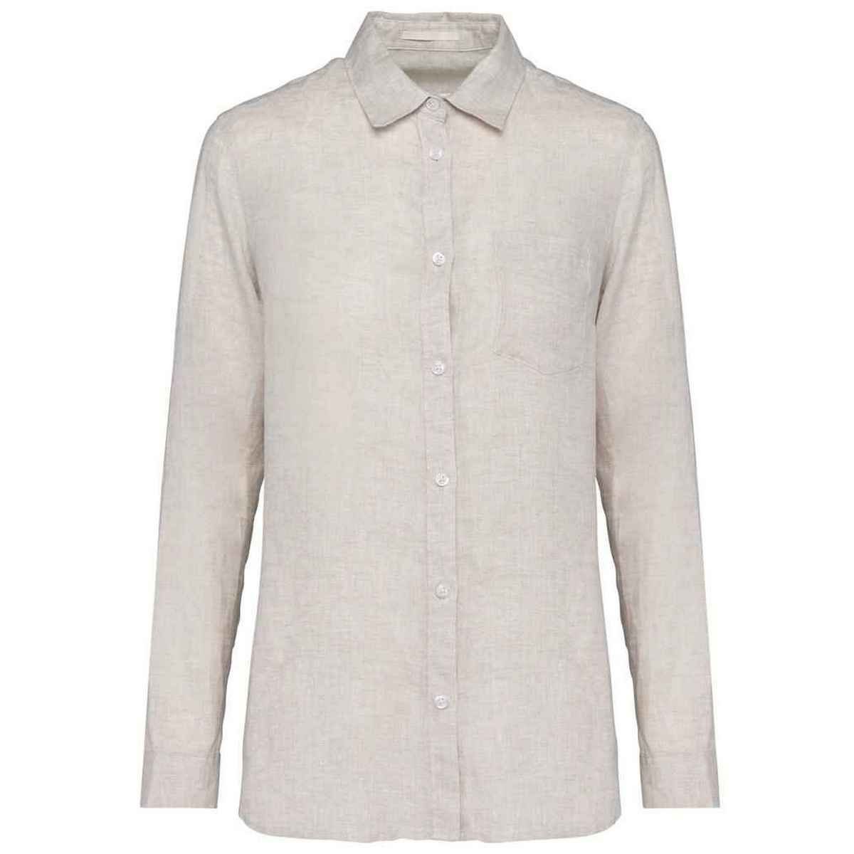 The Spasso Beige Linen Long-Sleeved Shirt for Women is made from linen.