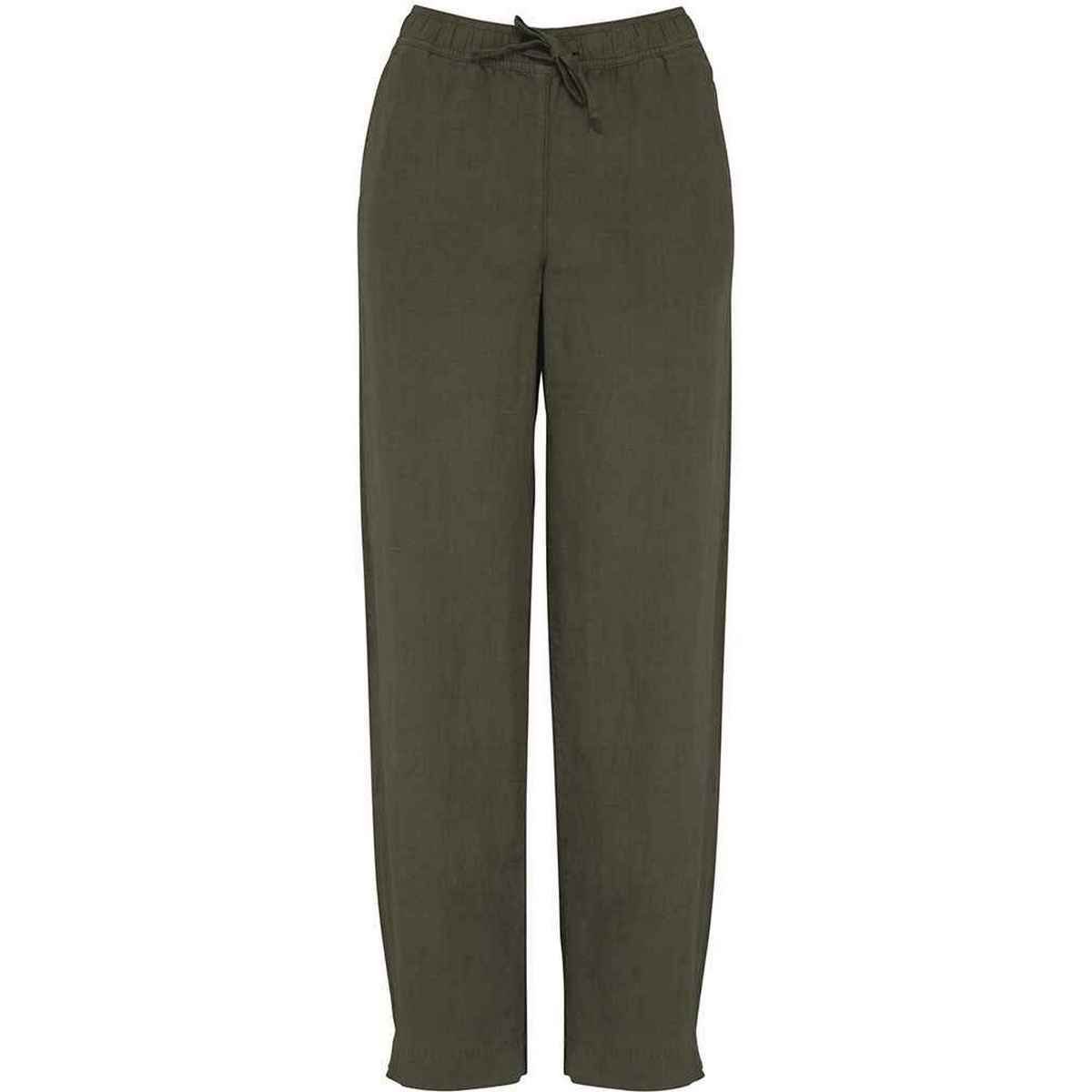 The Spasso Women's Khaki Washed Linen Trousers is made from linen.