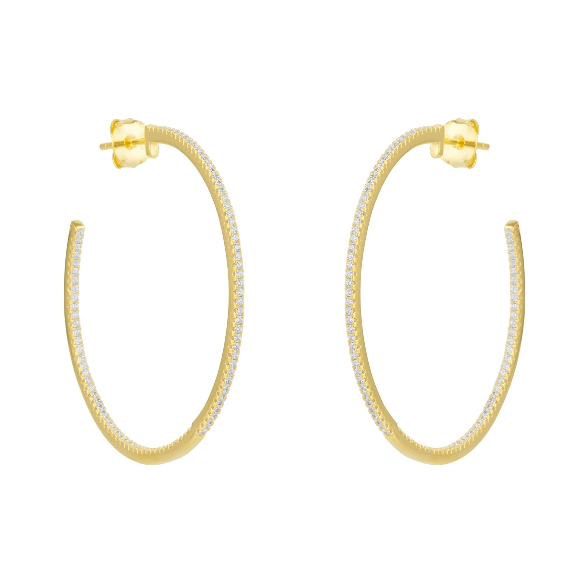 Elegant gold hoop earrings with interior gemstones. Crafted from sterling silver, these earrings add a touch of glamour to any outfit. Perfect for any occasion.