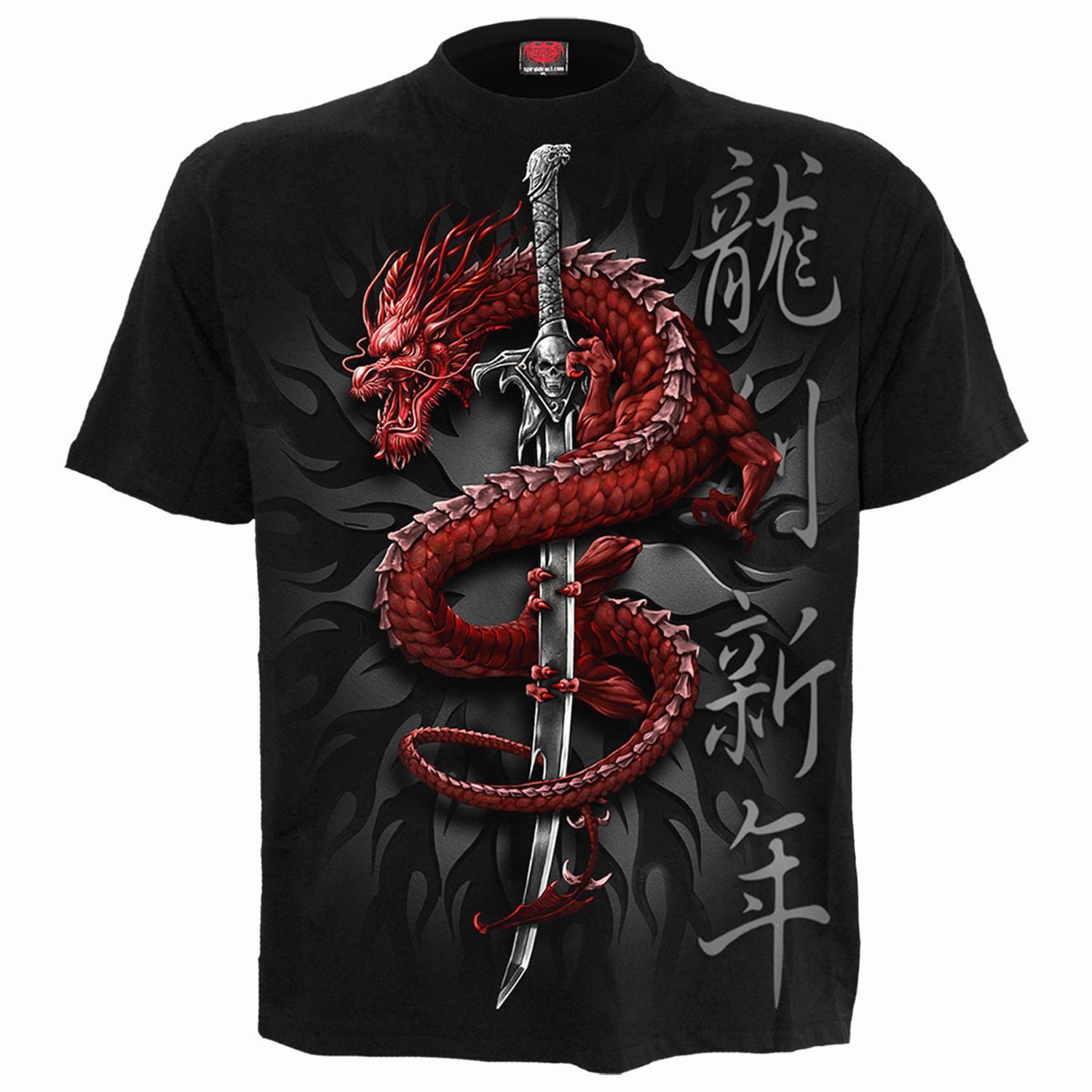 The Spiral Direct Black Dragon Back Print T-Shirt is available in sizes XL.