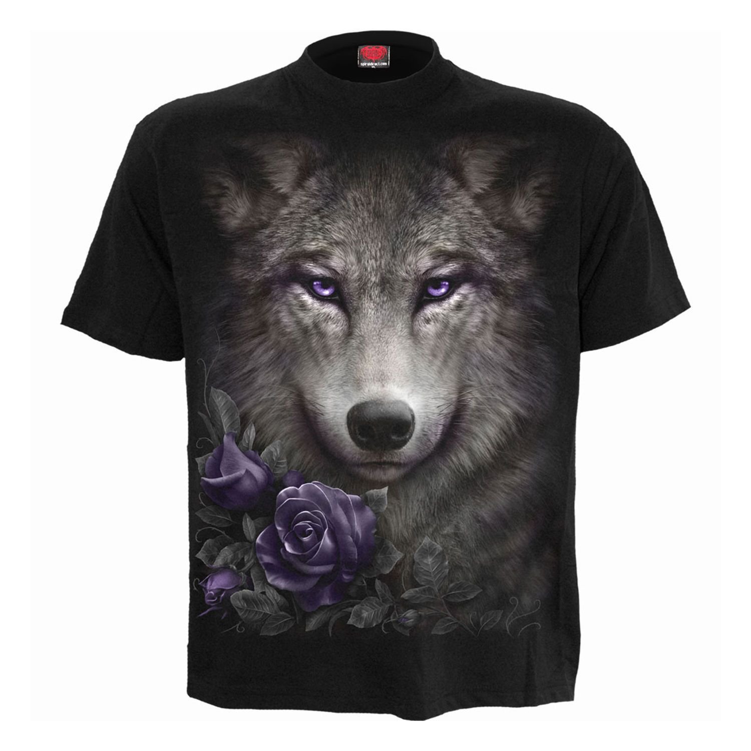 The Spiral Direct Men's Wolf Roses T-Shirt in Black is available in sizes 2XL, L, M, XL.