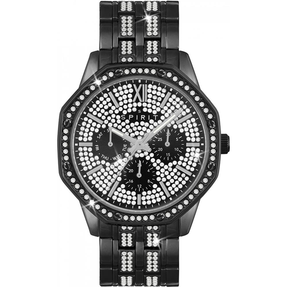 Stylish black quartz watch from Spirit, adorned with sparkling crystals. Features a bold, angular design and a day-date display. Ideal for casual and formal occasions.