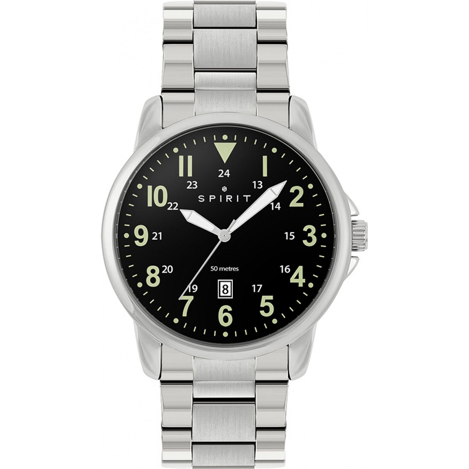 Unique and different, the Men's SP3009 Quartz Watch from Spirit offers a flawless design and craftsmanship. The watch features a silver metal bracelet and a black dial with luminous hands and markers. Ideal for everyday wear.