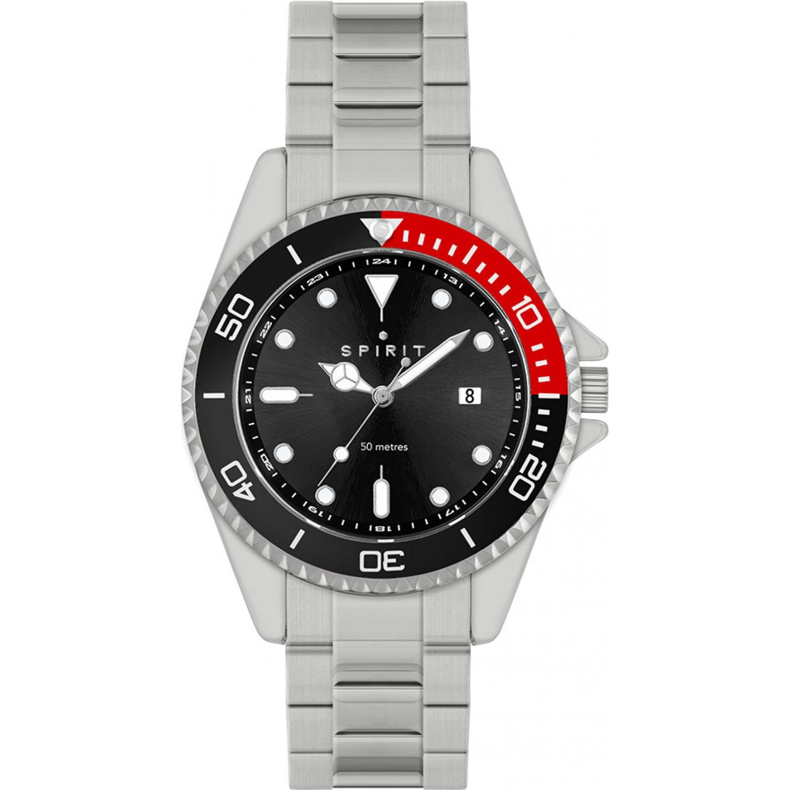 Unique and stylish Spirit SP3035 men's watch in silver with a black dial and red accent. Crafted with precision, it offers a perfect blend of elegance and functionality.