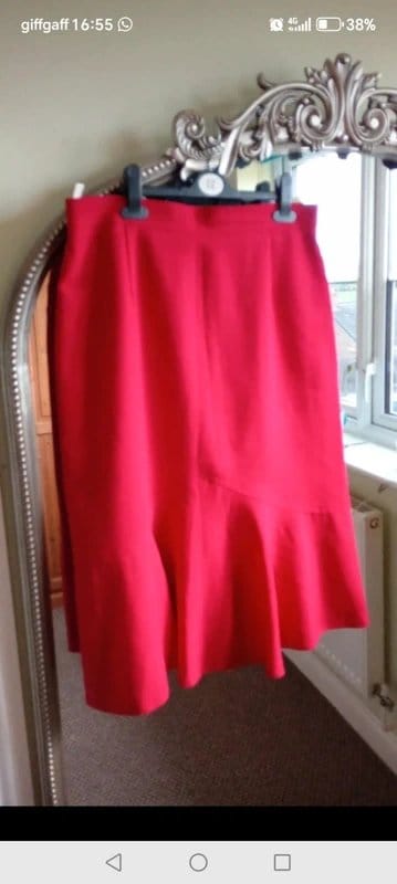 The St Michael Red Floaty Skirt Lined is available in sizes L.