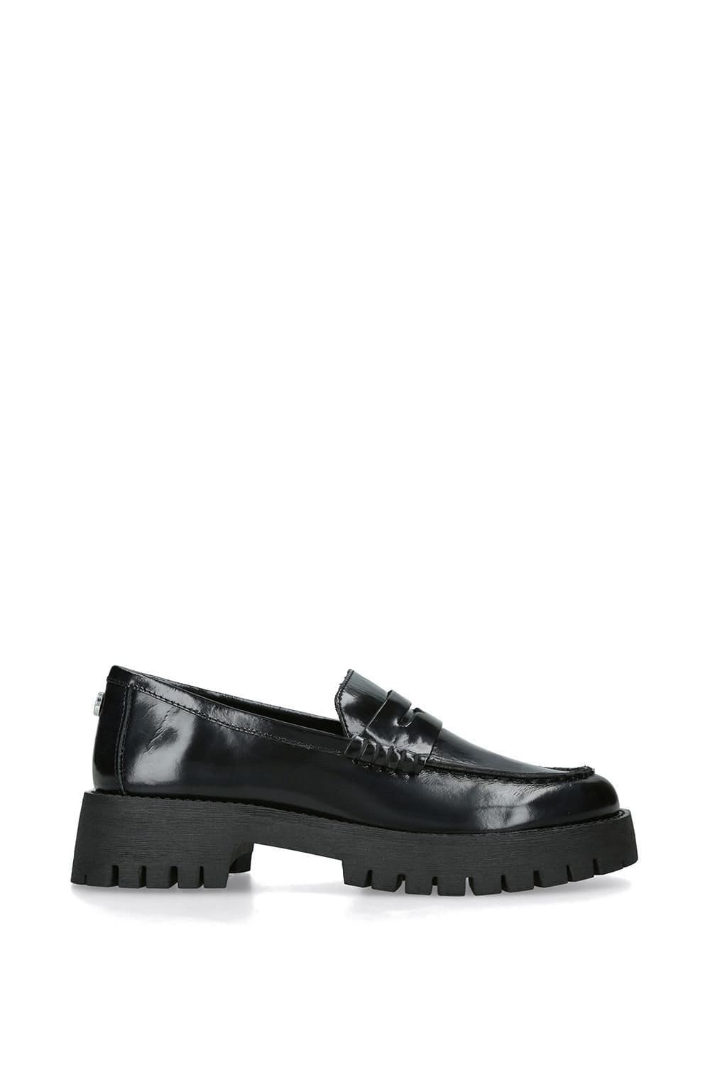 Step into elegance with these black leather flats from Steve Madden. Featuring a sleek design with a 40 mm heel and a chunky platform sole, these flats offer both style and comfort.