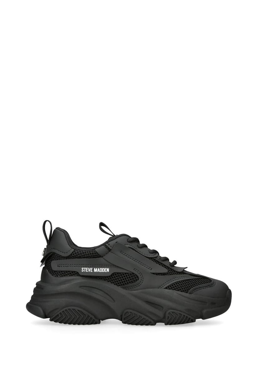 Modern Steve Madden Possession trainers in bold black. Crafted from durable synthetic material, these trainers feature a no-heel silhouette for all-day comfort. Ideal for casual wear.