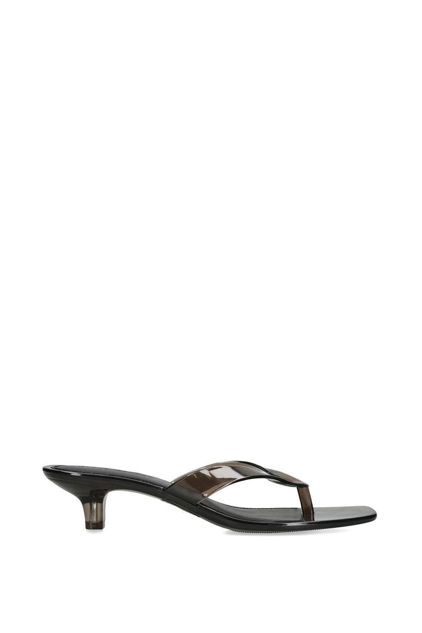 Sleek Steve Madden Tracie sandals in dark grey with transparent PVC straps. Featuring a 35 mm heel, these sandals offer a modern twist to summer footwear. Crafted from synthetic materials, they combine durability with style.