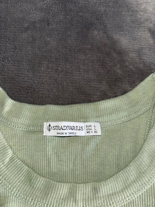The Stradivarius Green Ribbed Tank Top is available in sizes M.