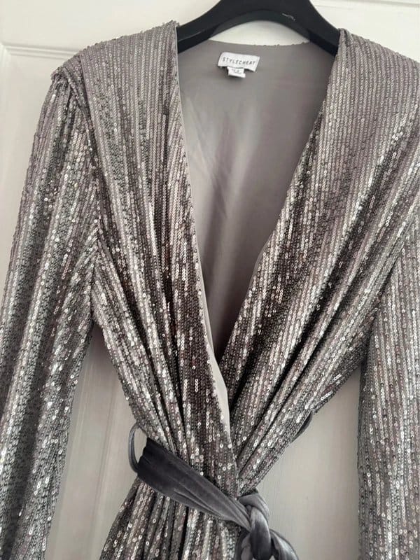 Style Cheat Silver Sequin Wrap Dress