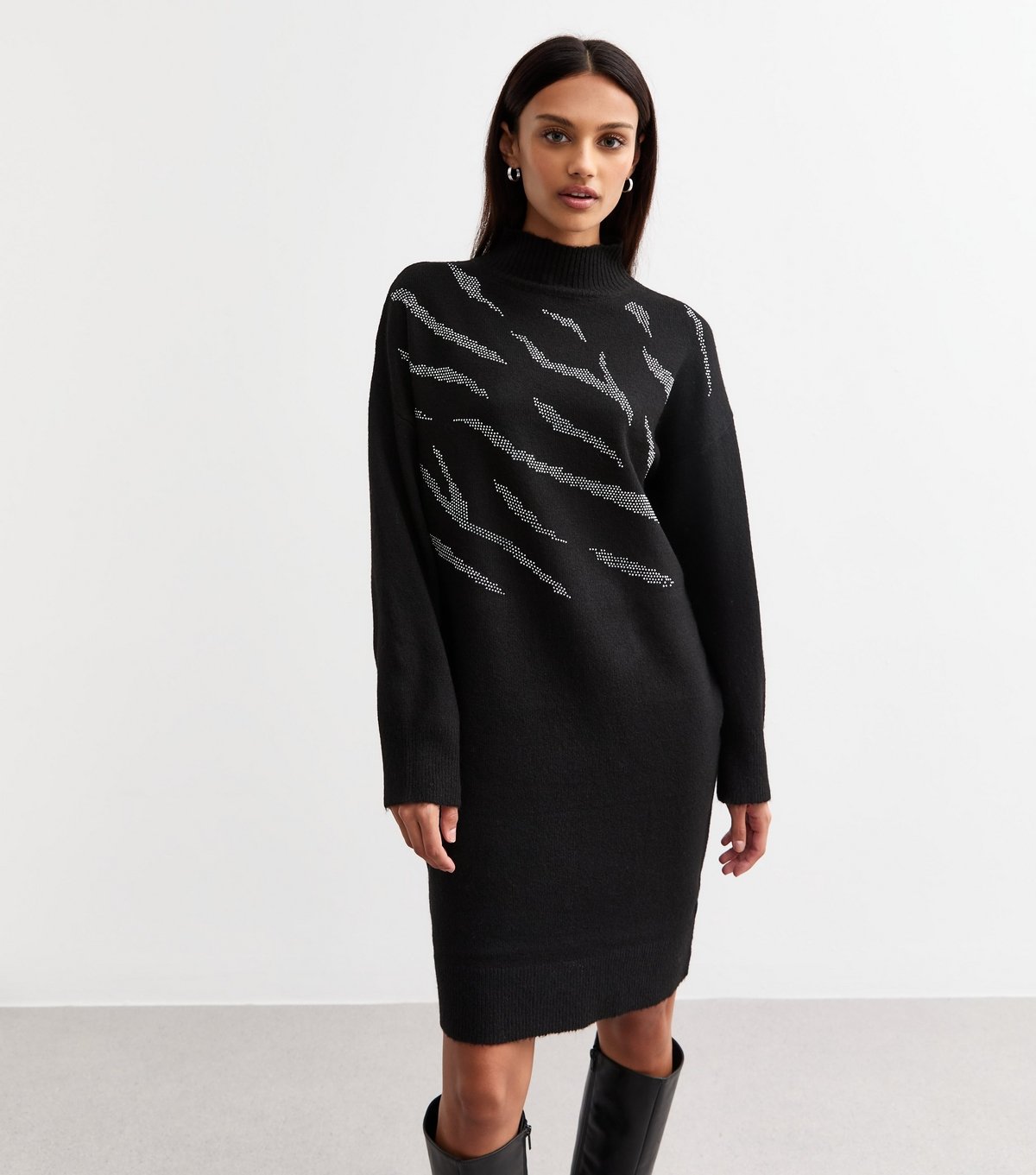 The Sunshine Soul Black Sequinned Zebra Jumper Dress is made from knit.