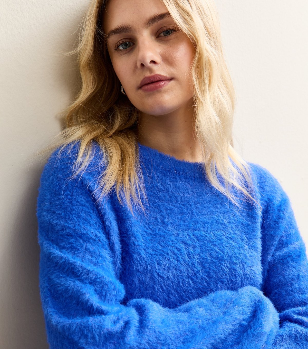 Vibrant and cozy, this bright blue fluffy jumper from Sunshine Soul is perfect for casual days. Made from fluffy knit fabric, it features a crew neckline and relaxed fit. Ideal for pairing with jeans for a pop of color.