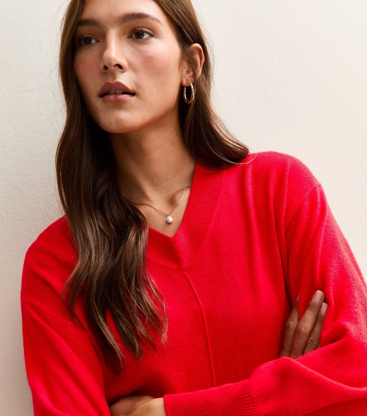 The Sunshine Soul Bright Red V-Neck Jumper is ideal for casual, everyday, date-night.