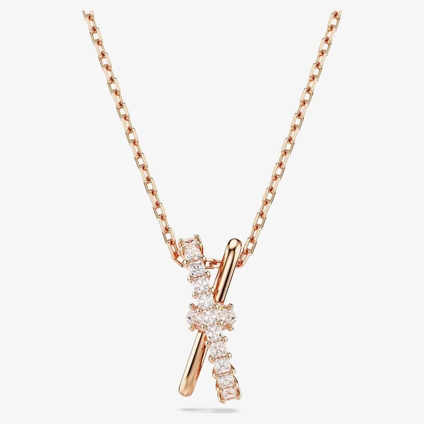 This rose gold-tone plated necklace features two bands adorned with clear Swarovski zirconia. A single oval-cut Swarovski zirconia adds sparkle at the centre. Adjustable between 38-45 cm, it's perfect for any occasion.