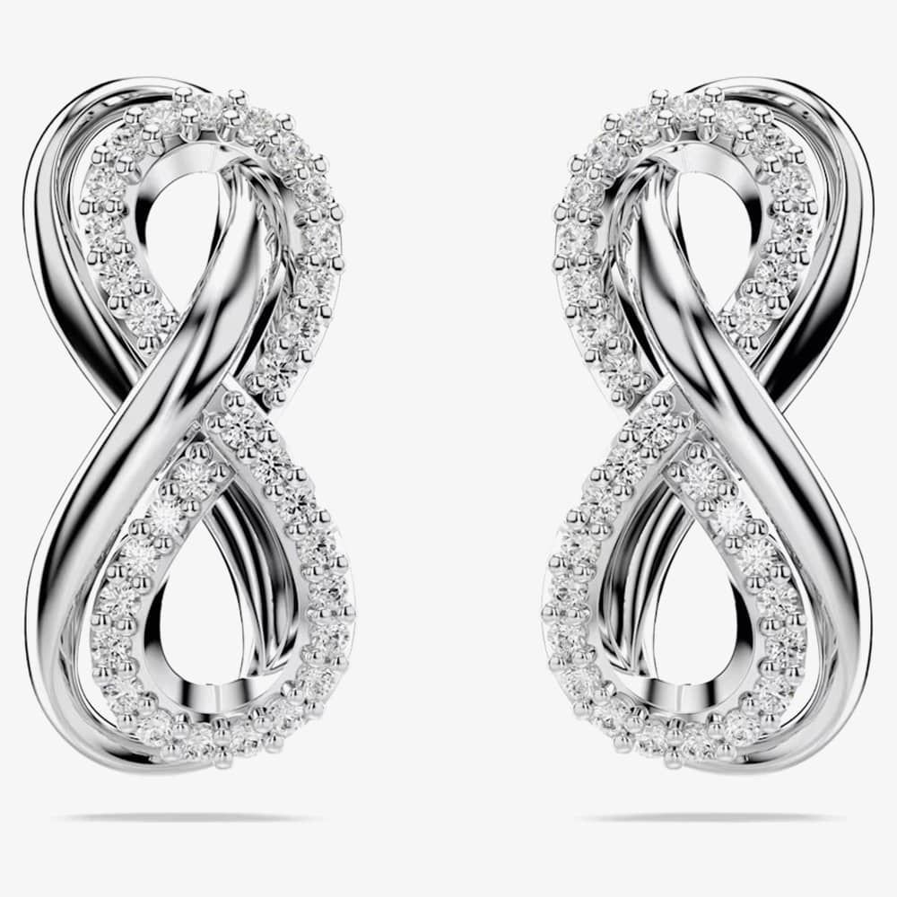 Elegant Swarovski earrings crafted in rhodium-plated metal, featuring an infinity motif adorned with clear Swarovski Zirconia. A perfect accessory for any special occasion.