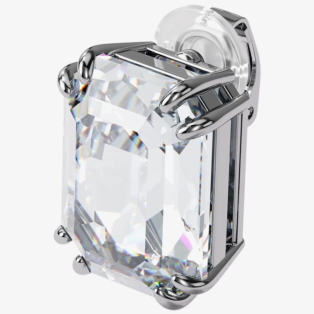 Elegant silver clip-on stud earring from Swarovski, featuring a dazzling crystal centerpiece and rhodium plating. Perfect for adding a touch of sparkle to any outfit.