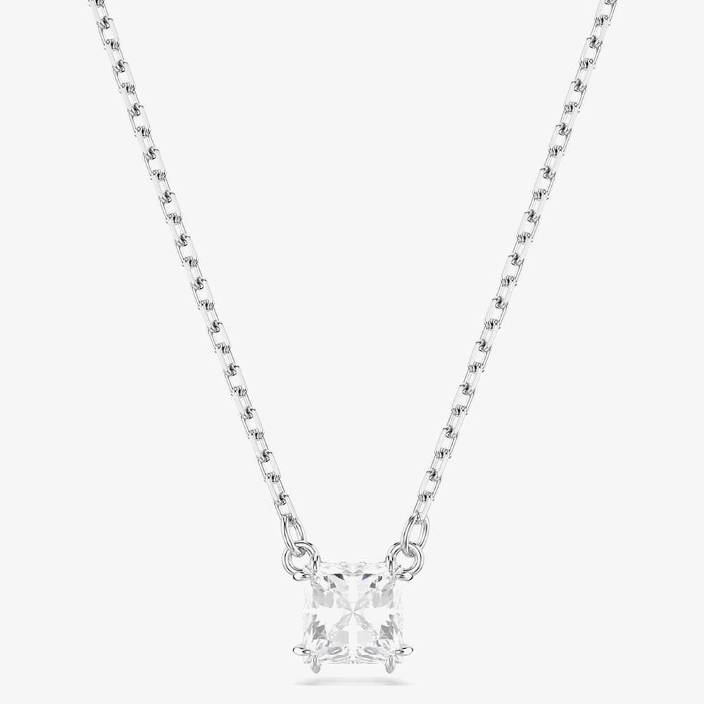 The Swarovski Silver Rhodium Plated Cubic Zirconia Necklace is made from rhodium-plated, cubic zirconia.