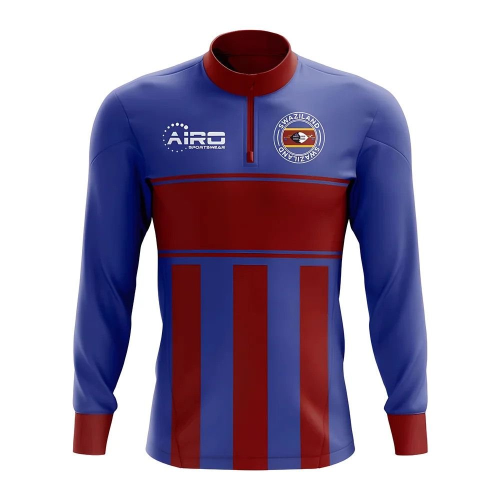 Stylish football half-zip midlayer top from Swaziland Airo Sportswear. Made from stretchy lycra-type material, this top is perfect for providing extra warmth during training. Features a unique design with blue and red stripes.
