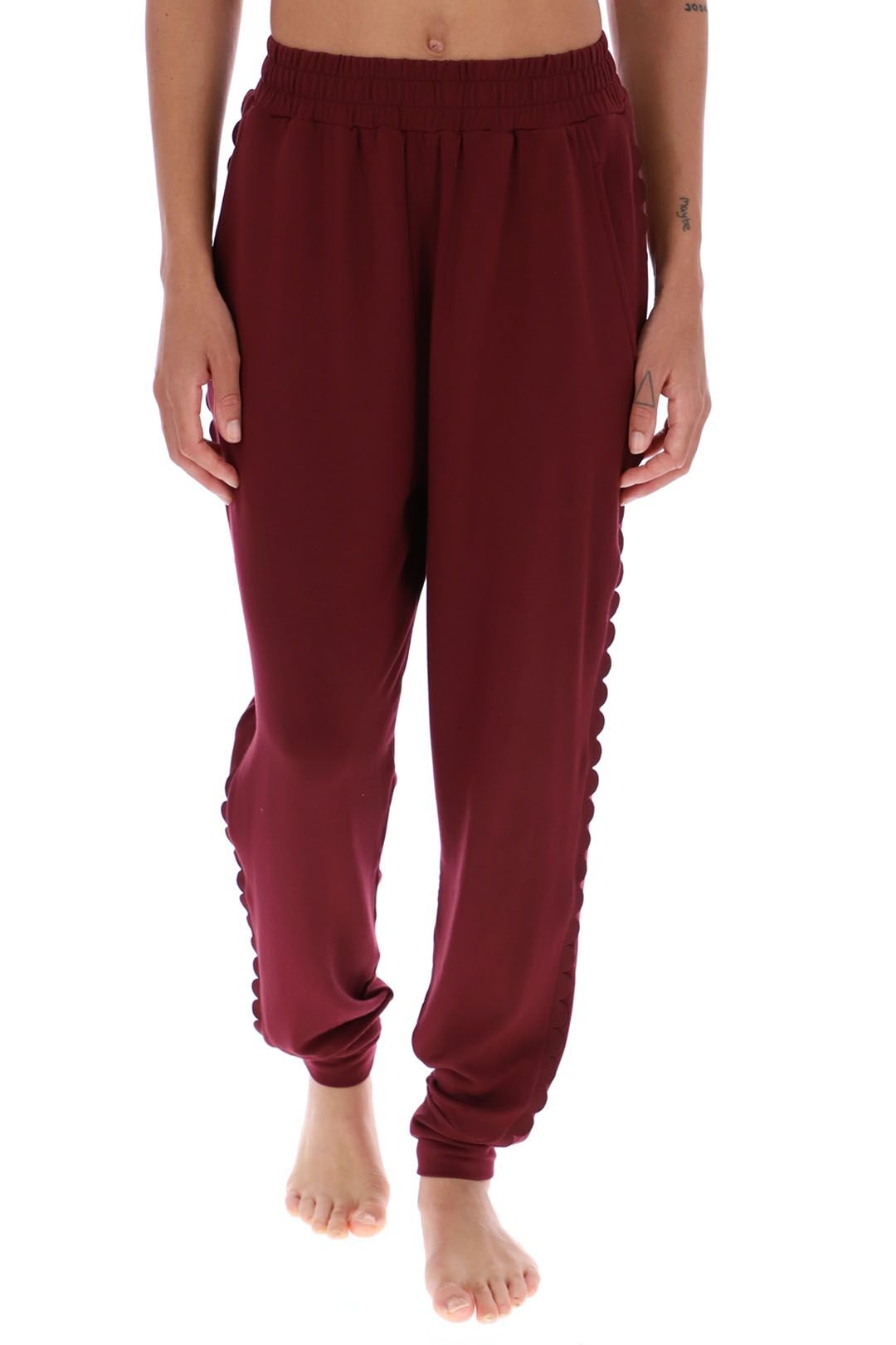 Distinctive scalloped side panel detailing for a unique Ted Baker twist. Elasticated waistband for optimal comfort during yoga and everyday wear. Relaxed fit through the leg with tapered ankle cuffs. Soft-touch fabric designed specifically for yoga and gentle movement.