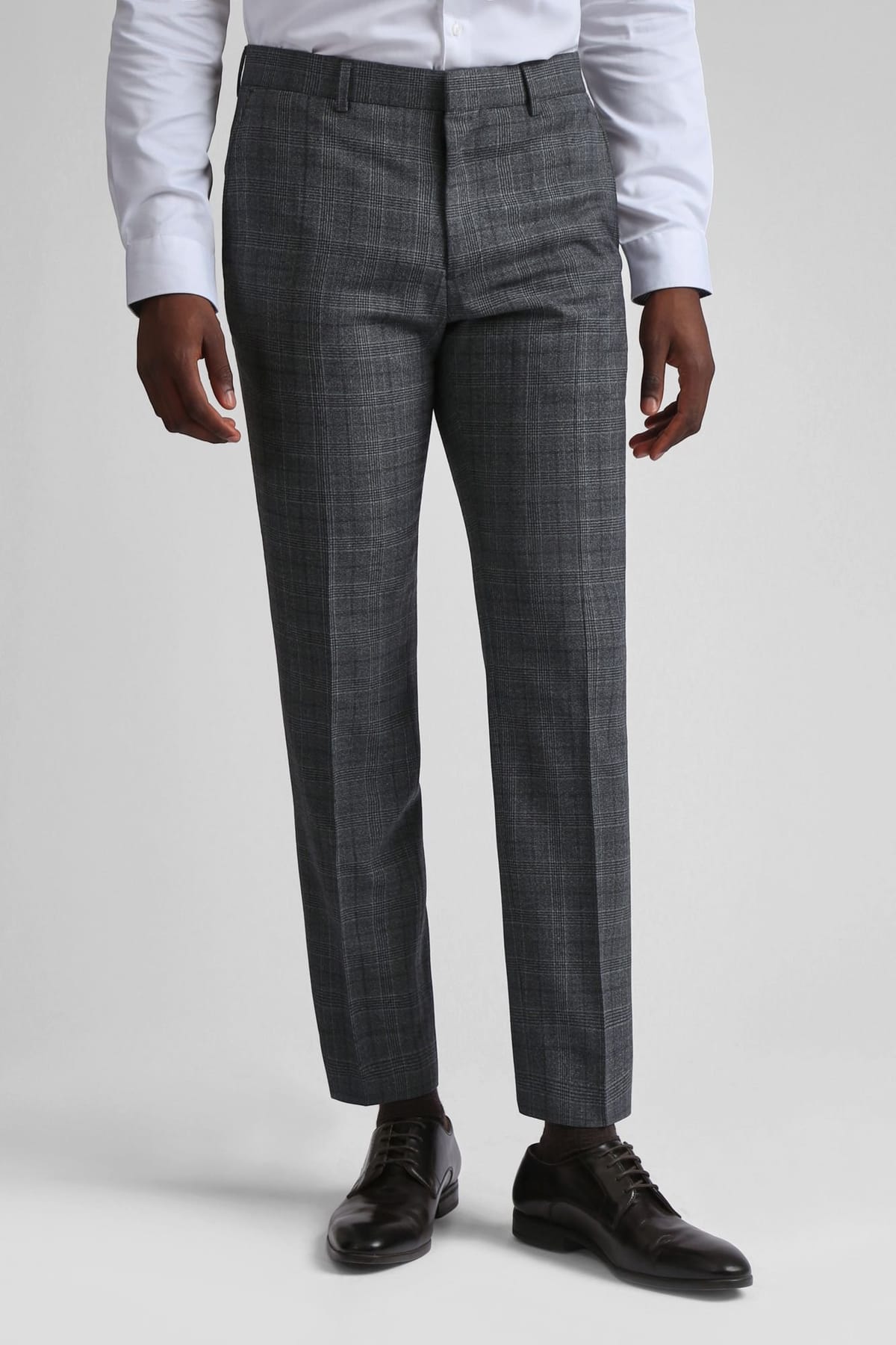 The Ted Baker Men's Zion Charcoal Text Check Slim Trousers in Grey is made from wool, polyester.