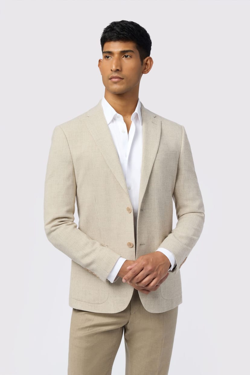 The Ted Baker Men's Monro Slim Fit Puppytooth Jacket in Nude is made from cotton, linen.