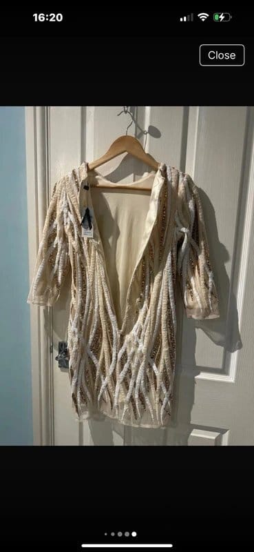 The TFNC London Cream & Gold Sequin Party Top Size 6-8 is available in sizes XXXL, XXL, XL, XS, L, M, S.