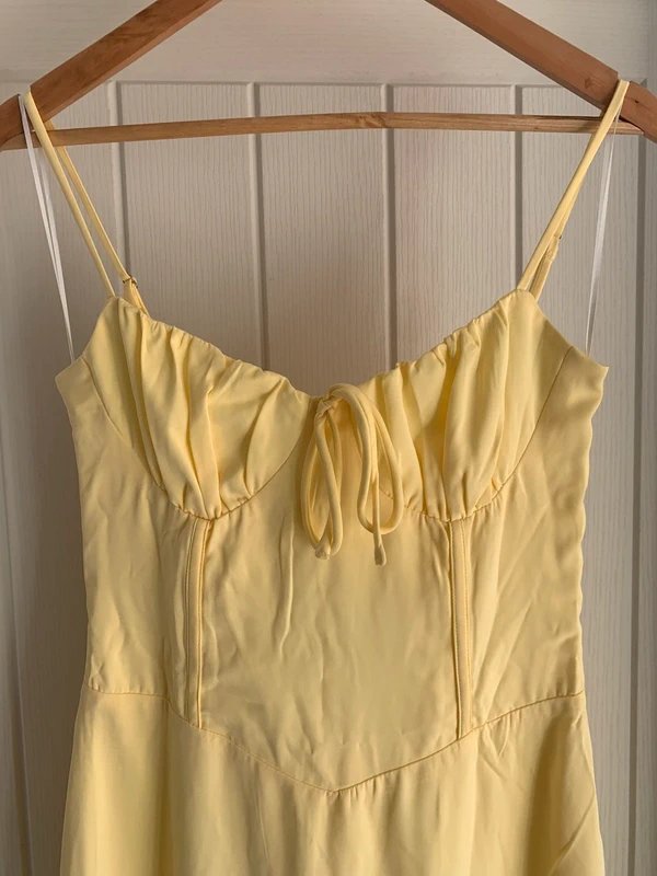 The That's So Fetch Yellow Corset Maxi Dress is available in sizes M.