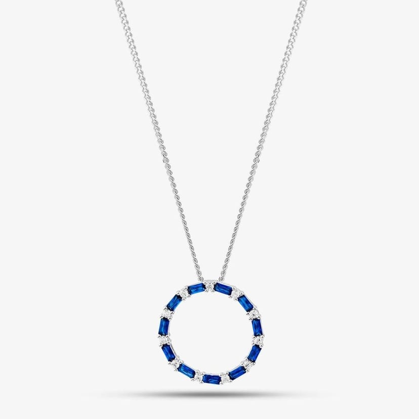 The T.H.Baker Blue Cubic Zirconia Circle Pendant Necklace is made from sterling silver, cubic zirconia.