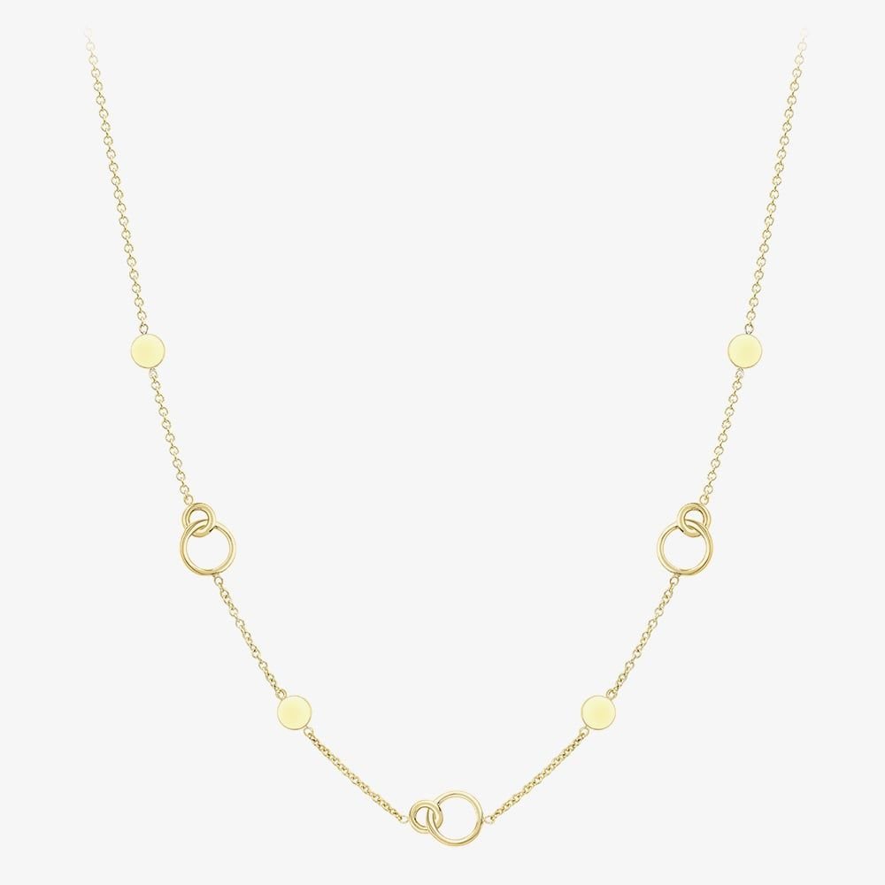 The T.H.Baker Gold 17 Inch Interlocking Circle Disc Chain Necklace is made from gold.