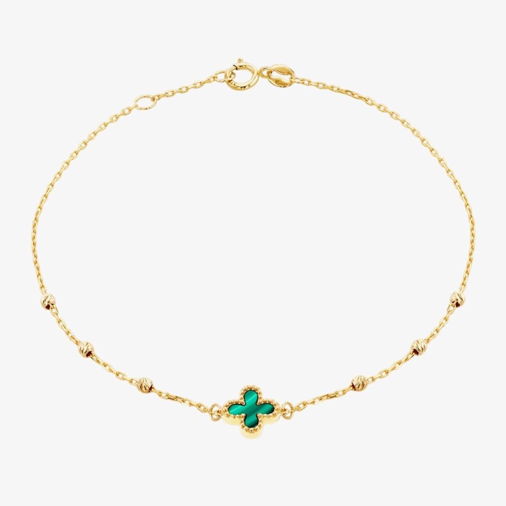 The T.H.Baker Gold Malachite Clover Bracelet is ideal for everyday, special occasions, formal events.